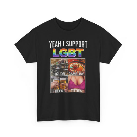 Yeah I Support LGBT Funny Parody Shirt – Liquor, Gambling, Beer & Titties Graphic Tee