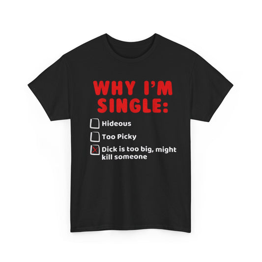 Why I’m Single Funny Shirt – “Dick Is Too Big Might Kill Someone” Adult Humor Graphic Tee