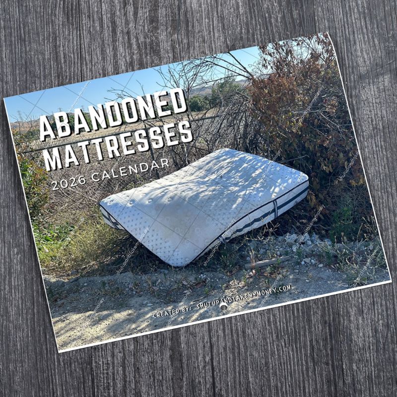 Don’t let 2026 be ordinary. Gift confusion, laughter, and a touch of “why does this exist?” with the Abandoned Mattresses 2026 Funny Gag Gift Calendar — the only calendar that’s equal parts art, trash, and treasure.