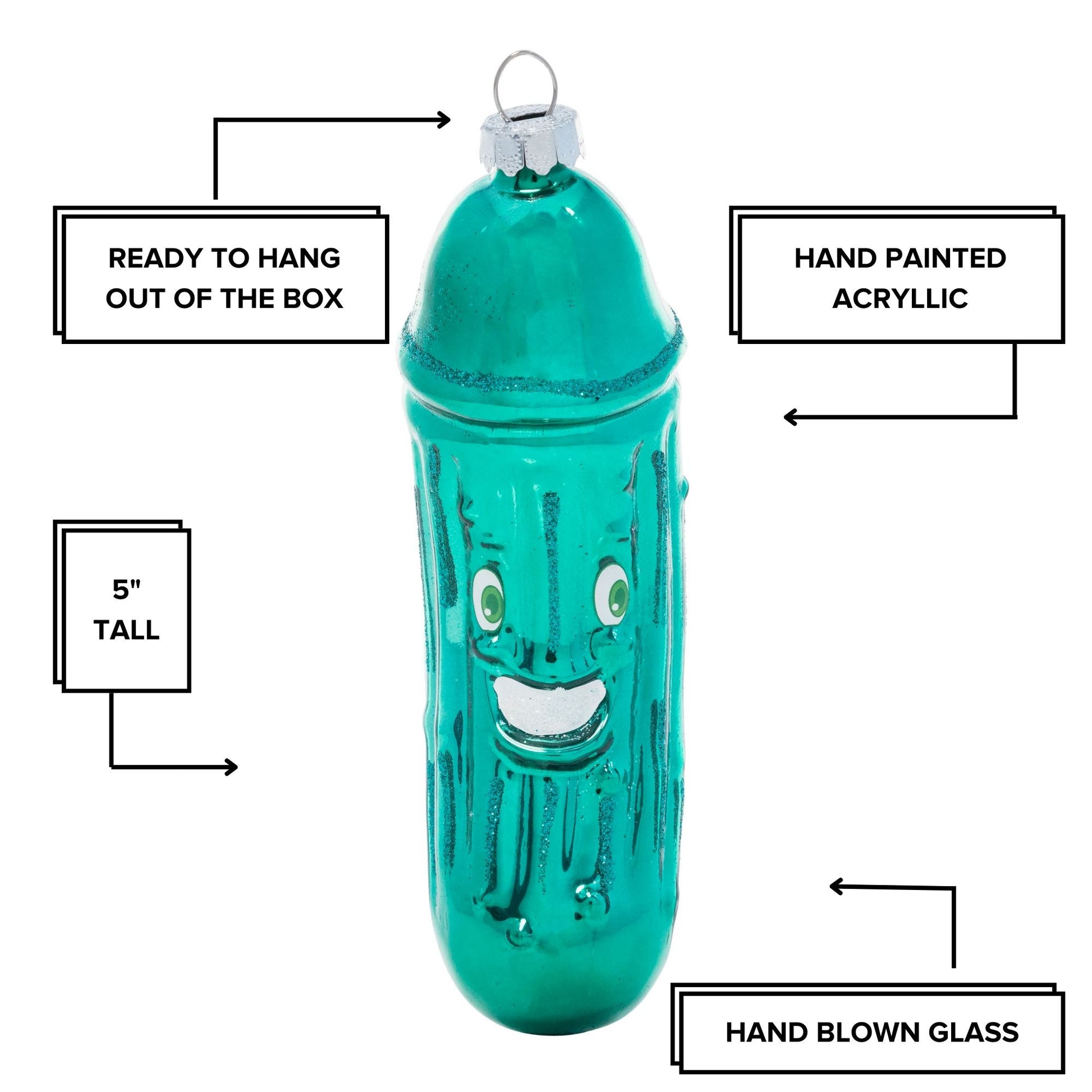 🥒 Hand-blown glass & hand-painted acrylic – Every glossy curve and pickle vein crafted with care.