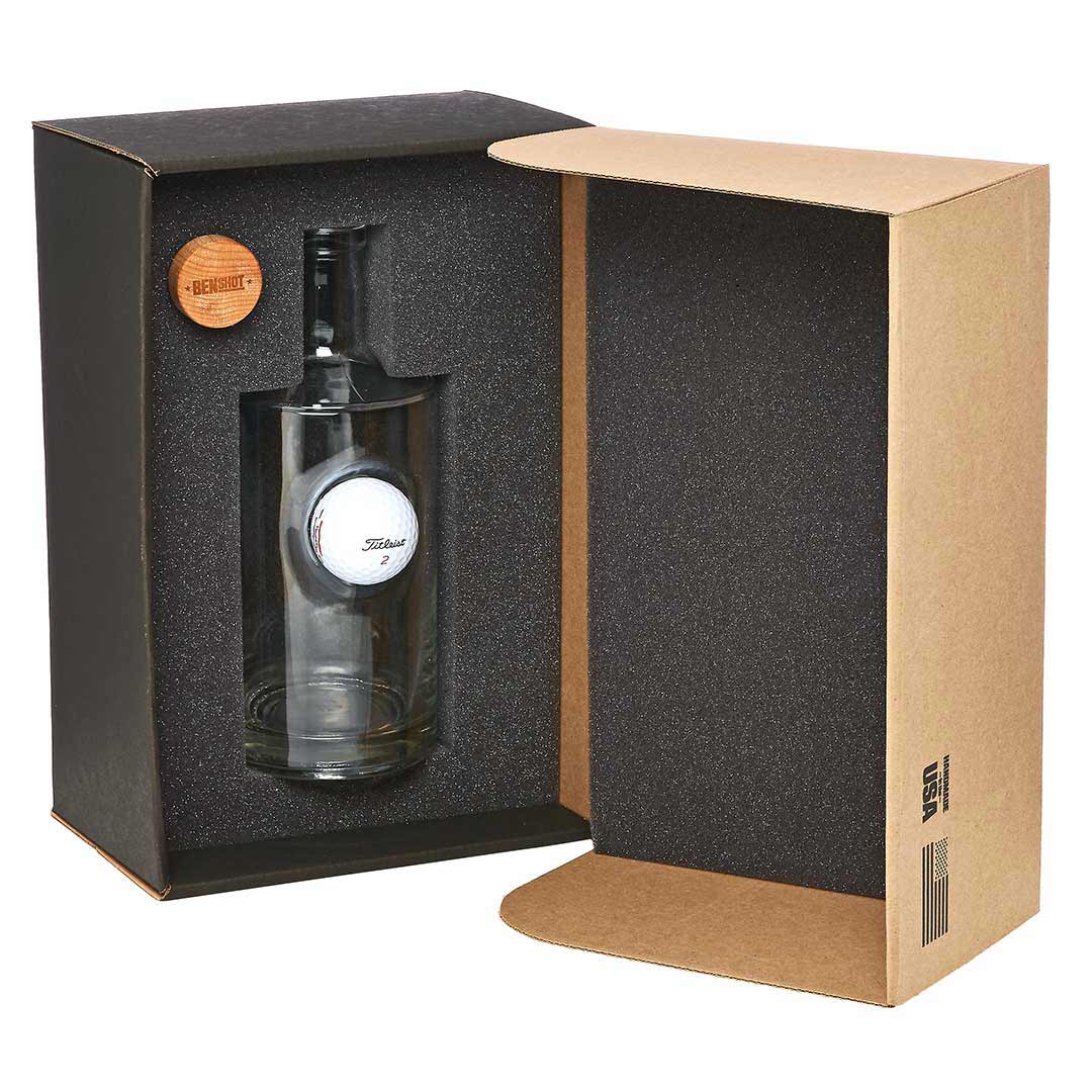 We embed a real Titleist golf ball into each glass we make. Our golf ball glasses are high-quality, heavy, and handcrafted in our glass workshop in Wisconsin. All packaging and raw materials are made in the USA.