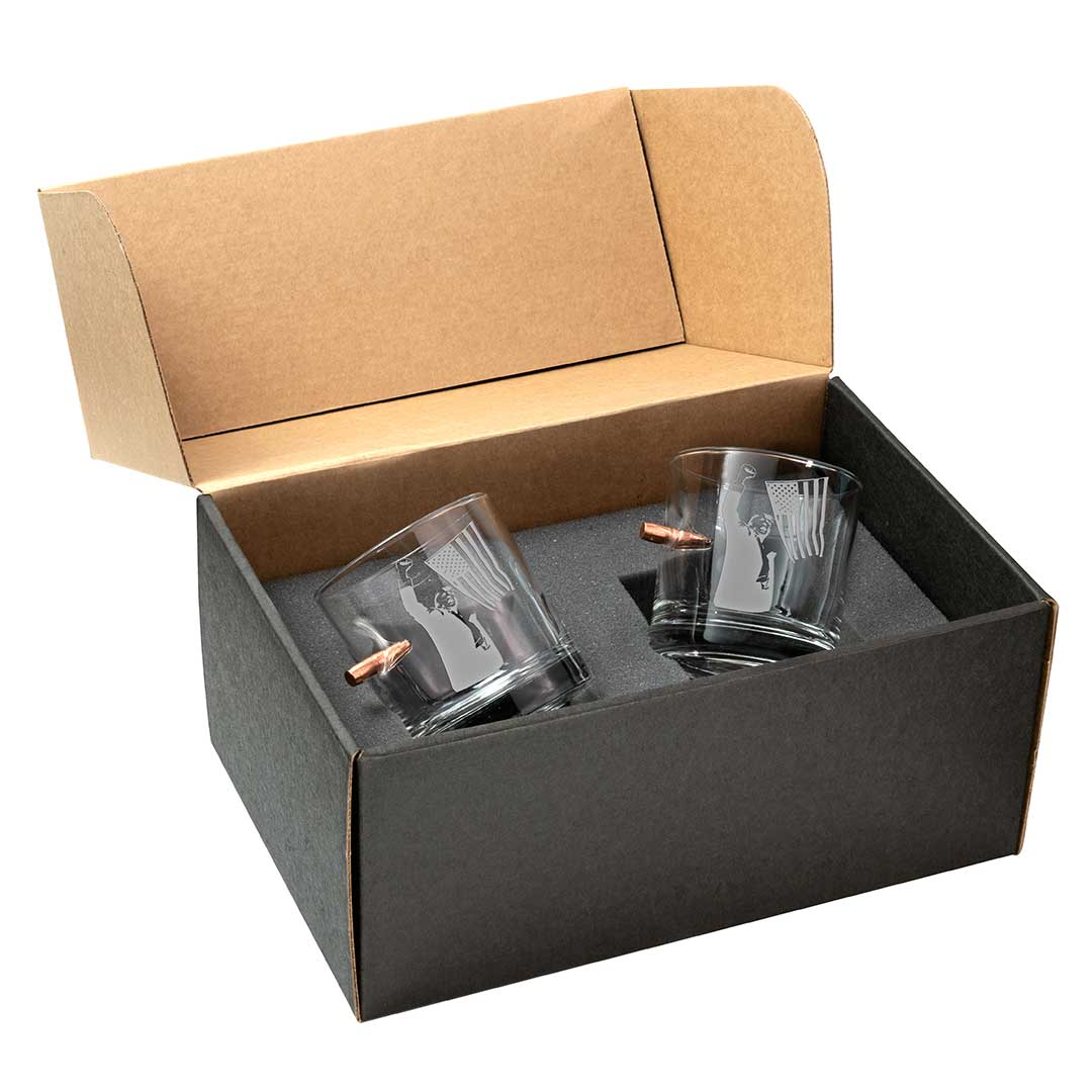 - 11oz whiskey rocks glass with real, lead-free, solid copper .308 bullet embedded